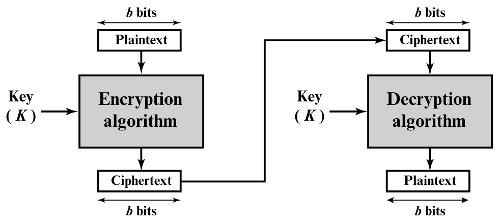 • Block size: 即每次输入多少位原文, 一般是 \(2\) 的幂次方 (比如 \(128\) bit).