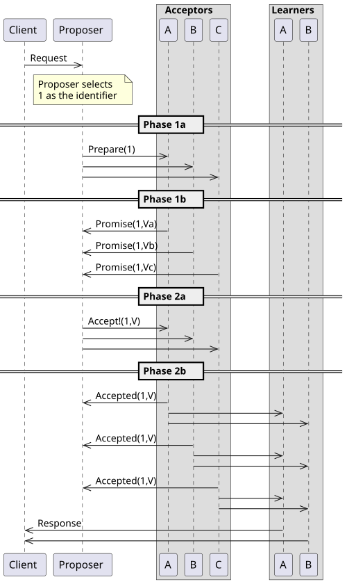 W. Contributors, “Paxos (computer science).” Wikipedia; Wikimedia Foundation, Dec. 2025. Available: https://en.wikipedia.org/wiki/Paxos_%28computer_science%29#Basic_Paxos_without_failures. [Accessed: Dec. 21, 2025]