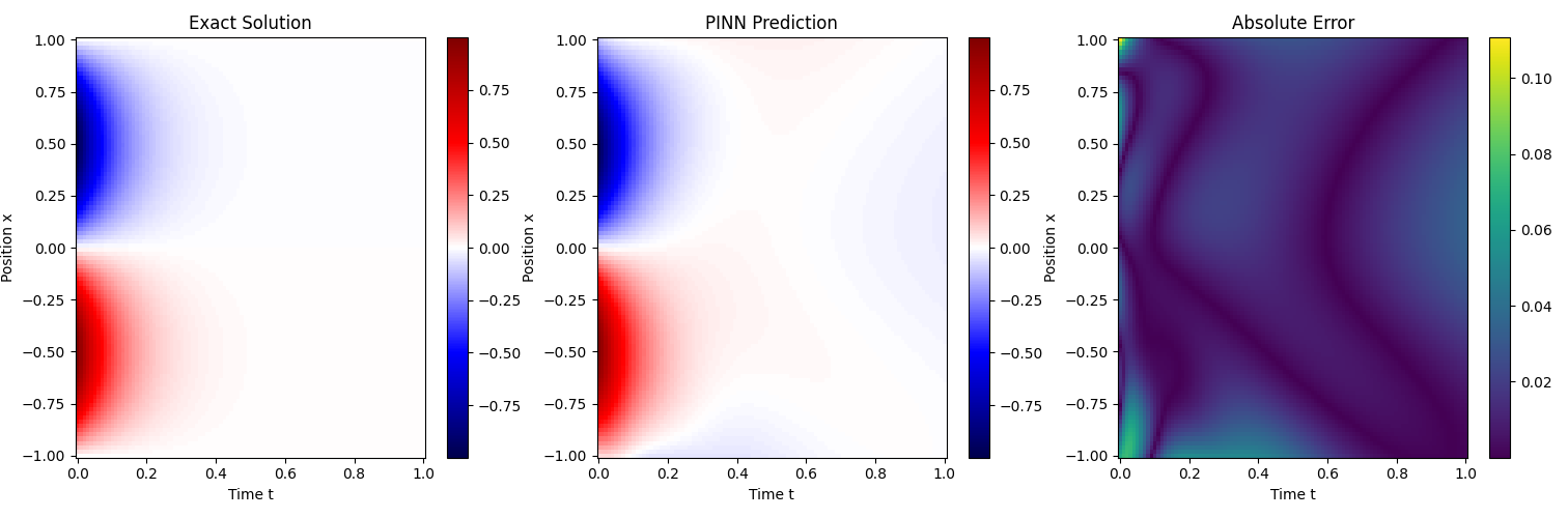 x_test, t_test, X_test, T_test, U_exact, U_pred, U_err = predict_on_grid(